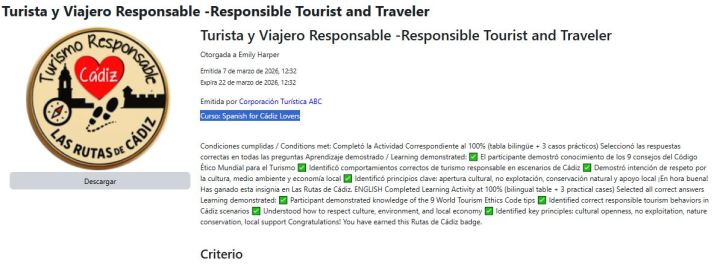 ¿Para qué sirven? Para motivar al participante, ludificar el aprendizaje y certificar competencias del turismo responsable de forma visual y verificable.